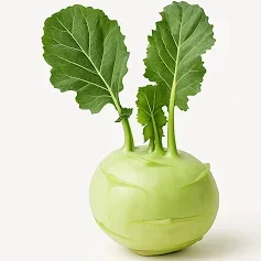 Kohlrabi is a Brassica vegetable, also known as the "cabbage turnip," with a crunchy, juicy, sweet, and mild flavor similar to broccoli stems or a sweet radish. It's not a root vegetable but rather the engorged stem of the plant, and both the swollen bulb and the green leaves are edible. You can eat kohlrabi raw in salads or snacks, or cook it by roasting, steaming, grilling, or stir-frying.